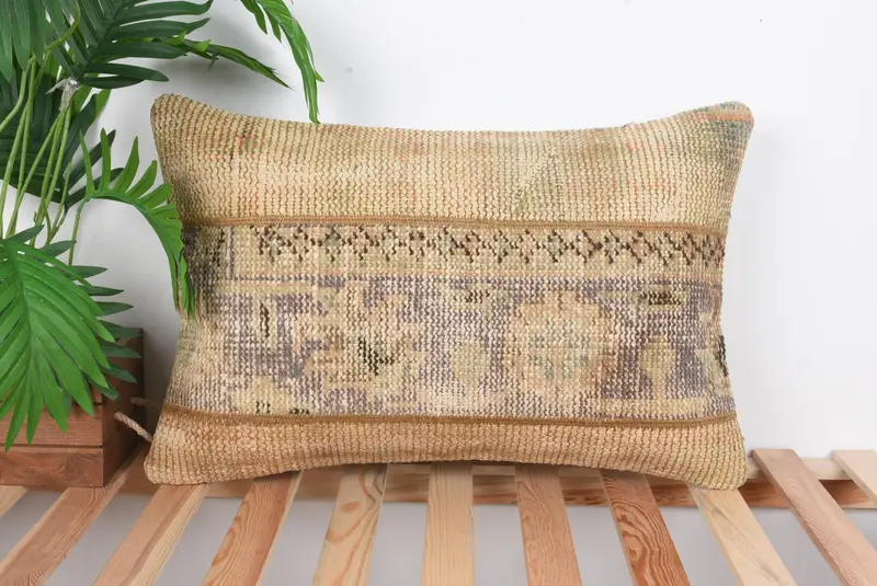 Almohada de tiro patchwork marrón y gris, cojín bordado hecho a mano