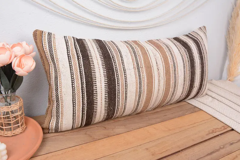 Almohada de lanzamiento de patchwork beige y marrón, cojín hecho a mano de 16x36