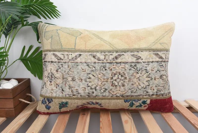 Almohada de tiro rectangular bordada, cojín de patchwork hecho a mano