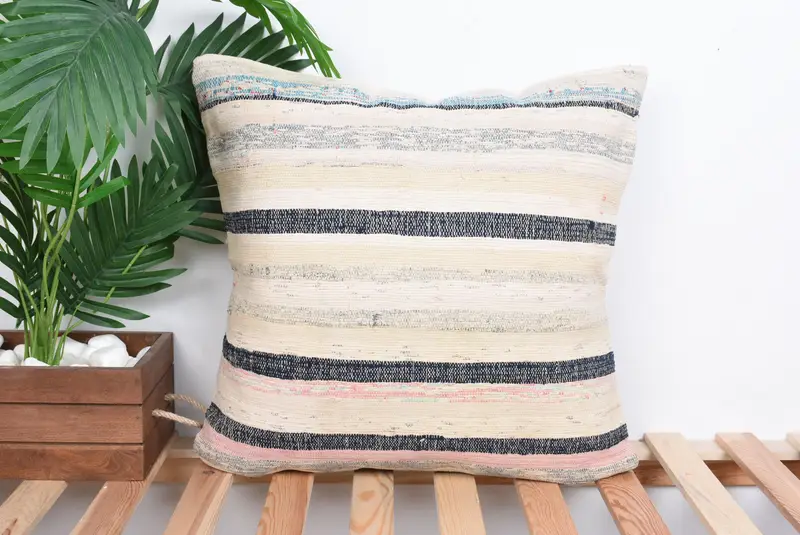 Almohada de tiro a rayas hecha a mano, cojín bordado 20x20
