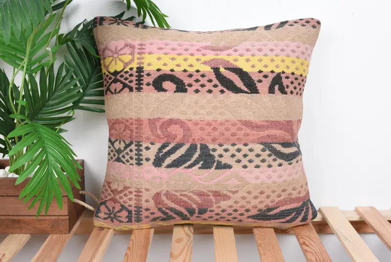 Almohada de lanzamiento geométrico rosa, cojín bordado 20x20 con cremallera