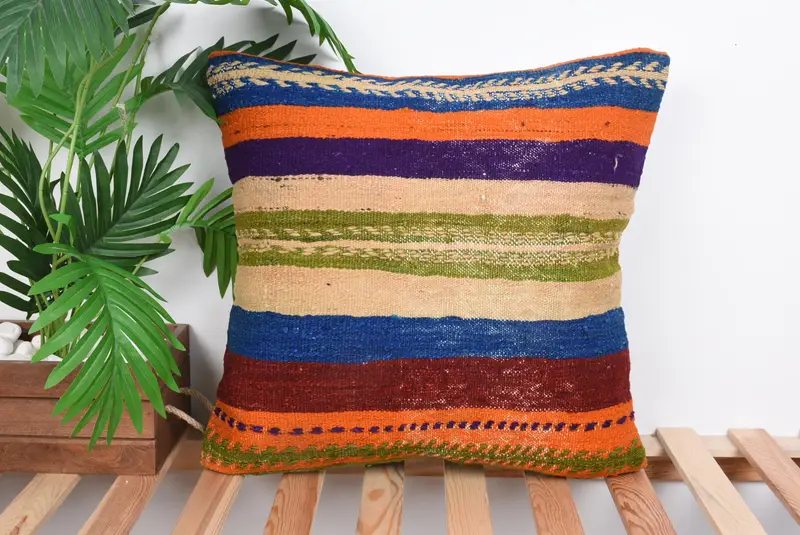 Almohada de tiro de rayas azules y rojas, cojín vintage bordado