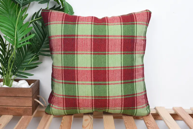 Almohada de tiro de rayas verdes y rojas, almohada vintage bordada
