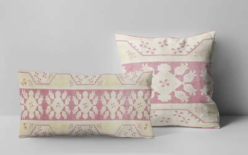 Almohada rosa bordada hecha a mano, almohada de lanzamiento del suroeste