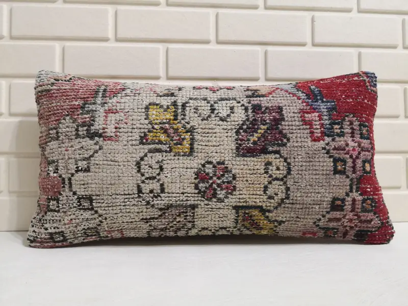 Almohada de lanzamiento de lana bordada hecha a mano, almohada rectangular con estampado geométrico