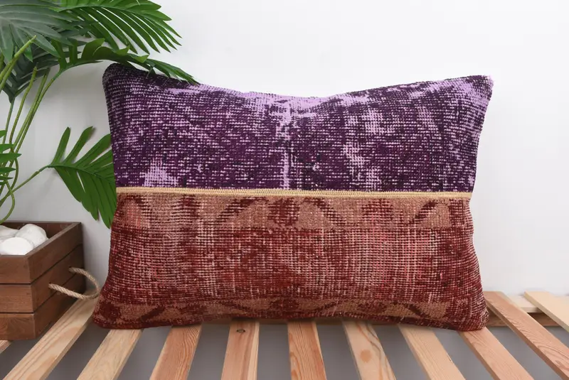 Almohada de lanzamiento de patchwork púrpura y marrón, cojín bordado 16x24