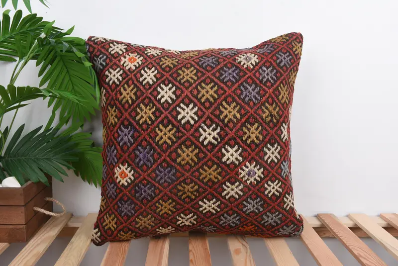 Almohada de lanzamiento bordada del suroeste rojo, cojín vintage 20x20