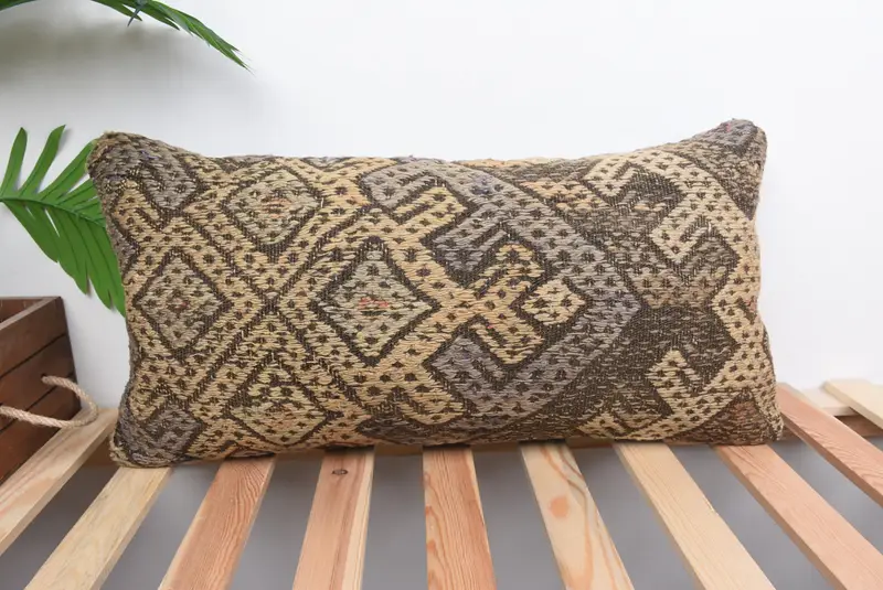 Almohada de tiro del suroeste beige, cojín rectangular bordado 12x24