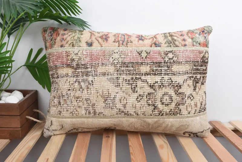 Almohada de lanzamiento de patchwork beige y marrón, cojín bordado 16x24