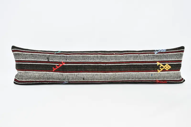 Almohada de tiro de rayas marrones y rojas, cojín vintage hecho a mano