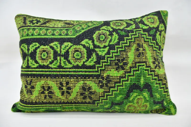 Almohada de lanzamiento de cáñamo verde, almohada rectangular bordada de 20x28