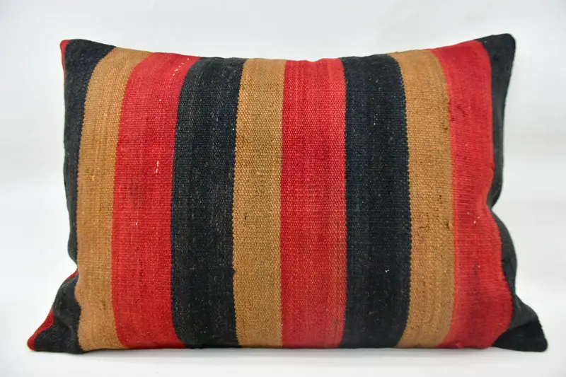 Almohada de tiro de rayas rojas, cojín bordado de 20x28 con cremallera