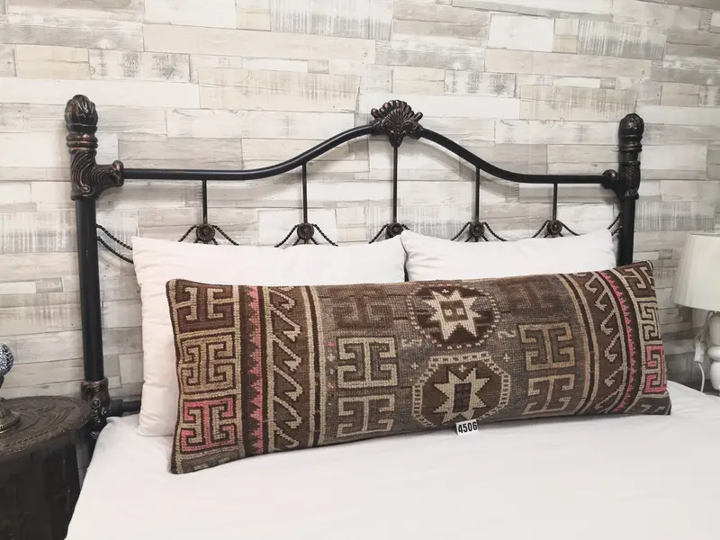 Almohada de lanzamiento de lana bordada, almohada vintage geométrica de 16x48 pulgadas