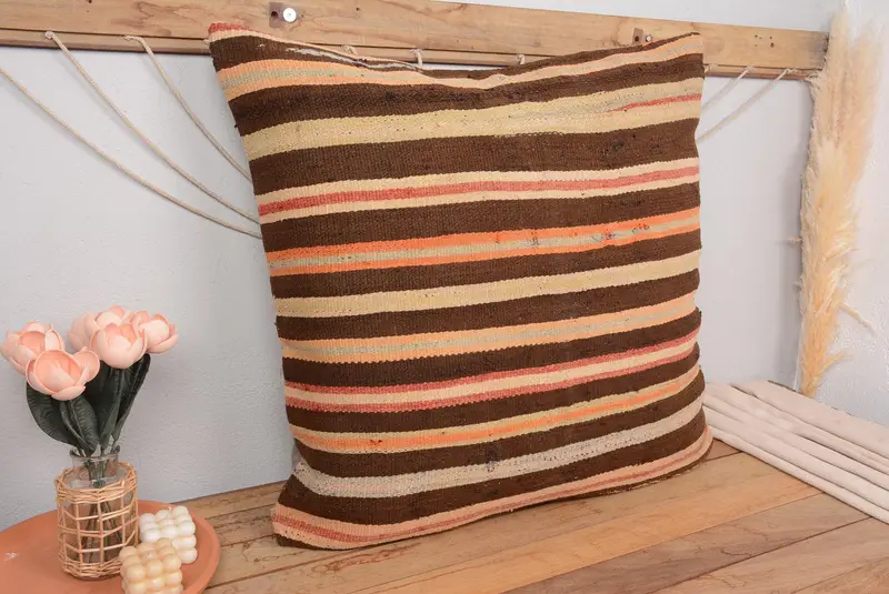 Almohada de rayas beige y marrón, almohada de tiro bordada 32x32
