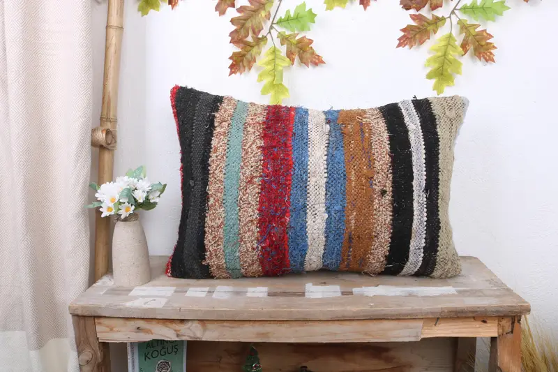 Almohada de tiro de rayas azules y verdes, almohada de lino bordada de 16x24