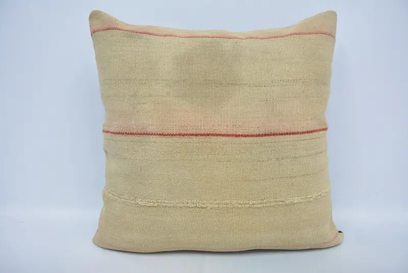 Almohada de tiro a cuadros beige y rojo hecha a mano, cojín versátil de 32x32 pulgadas