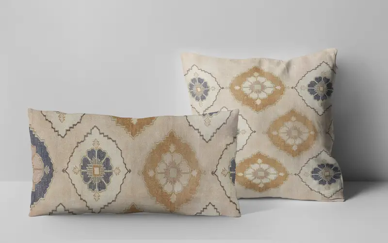 Almohada de lanzamiento bordada del suroeste beige, almohada vintage rectangular