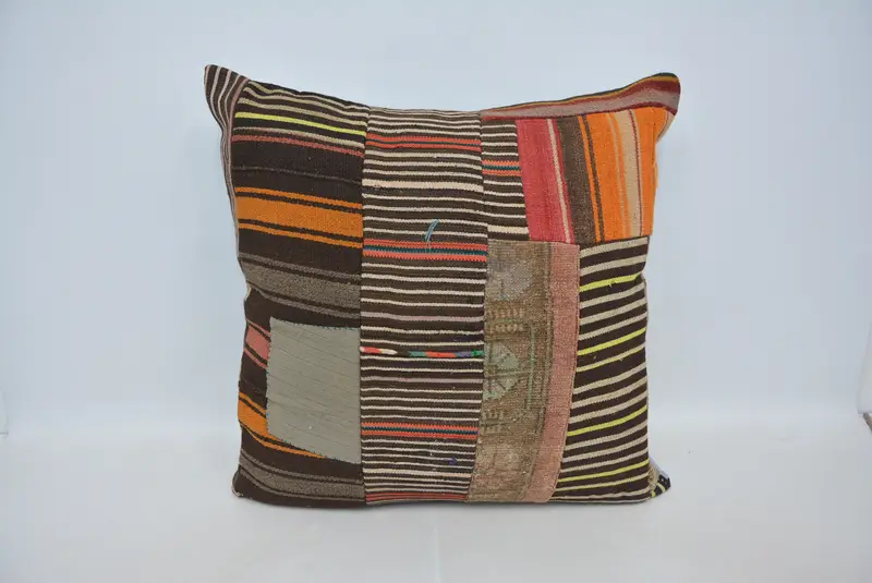 Almohada de tiro Kilim de cáñamo y lana hecha a mano, decoración vintage a rayas