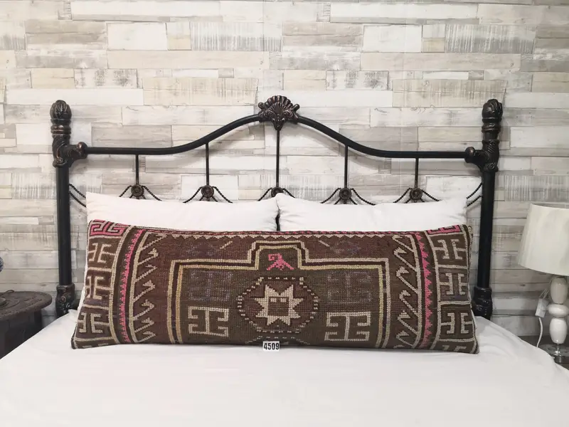 Almohada de lanzamiento de lana bordada hecha a mano, almohada rectangular de 16x48 pulgadas