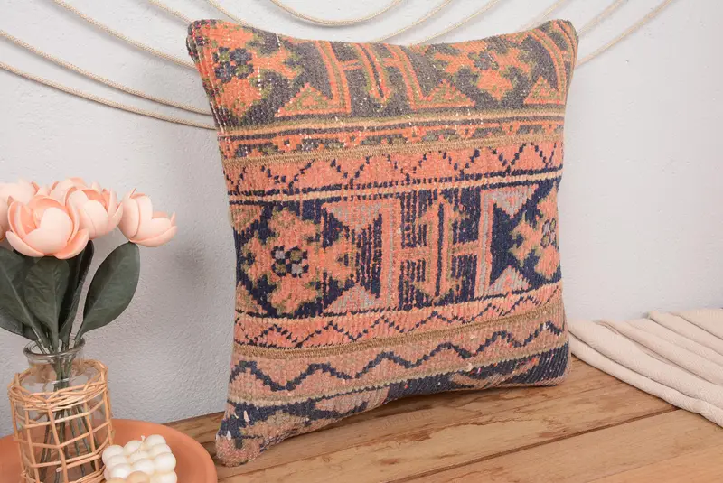 Almohada de tiro patchwork rojo y bronce, cojín bordado 20x20