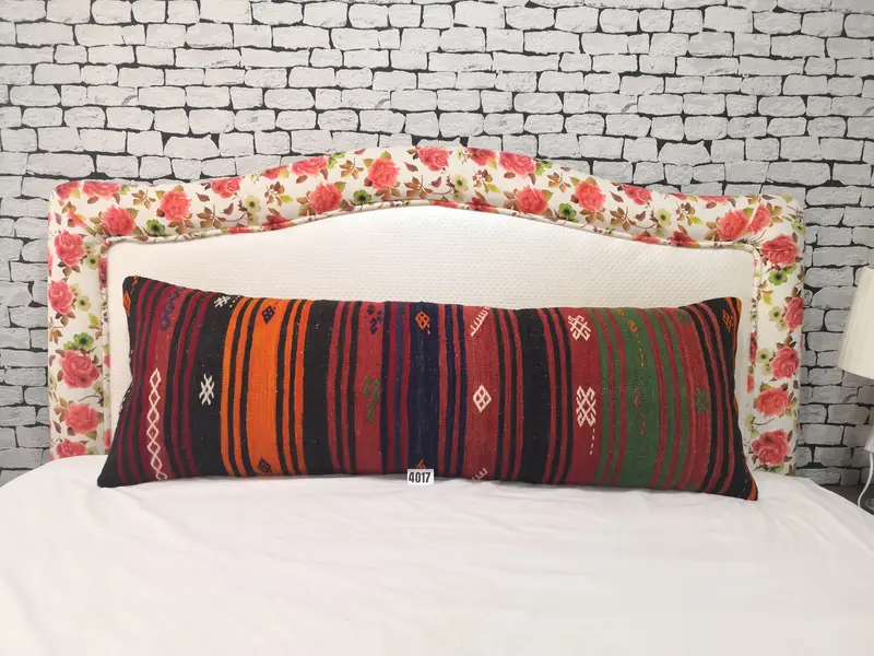 Almohada de lanzamiento de lana a rayas hecha a mano, cojín rectangular vintage