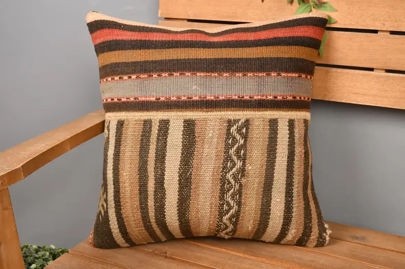 Almohada bordada de patchwork beige y marrón, cojín vintage hecho a mano