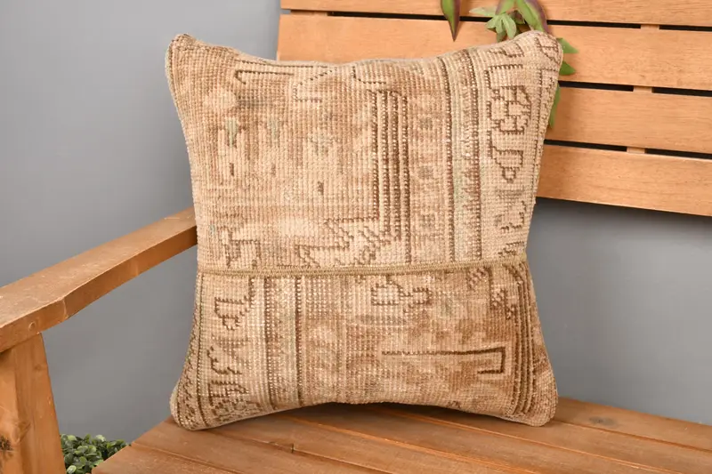 Almohada de lanzamiento de patchwork beige y marrón, cojín bordado hecho a mano