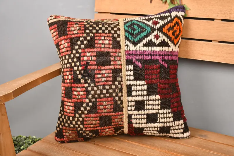Almohada de tiro patchwork rojo y naranja, cojín bordado 16x16