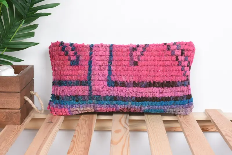 Almohada bordada geométrica, almohada de lanzamiento vintage rosa y púrpura