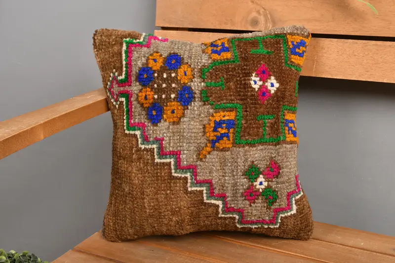 Almohada de tiro bordada del suroeste marrón, almohada de lino hecha a mano de 12x12