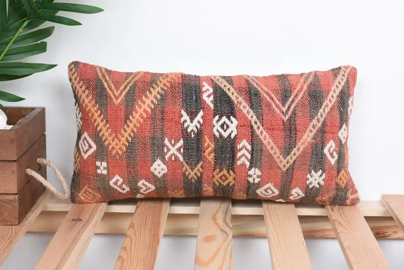 Almohada de tiro bordada roja y marrón, almohada geométrica vintage