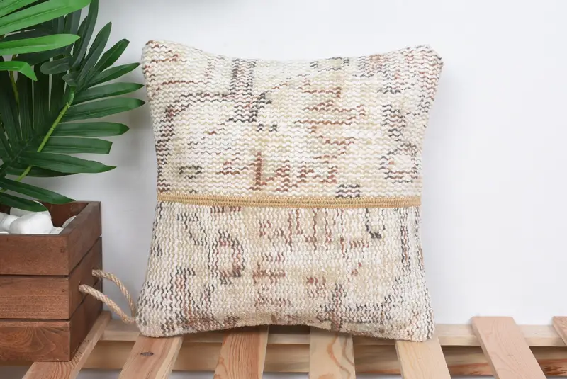 Almohada de lanzamiento de patchwork beige y marrón, cojín bordado hecho a mano