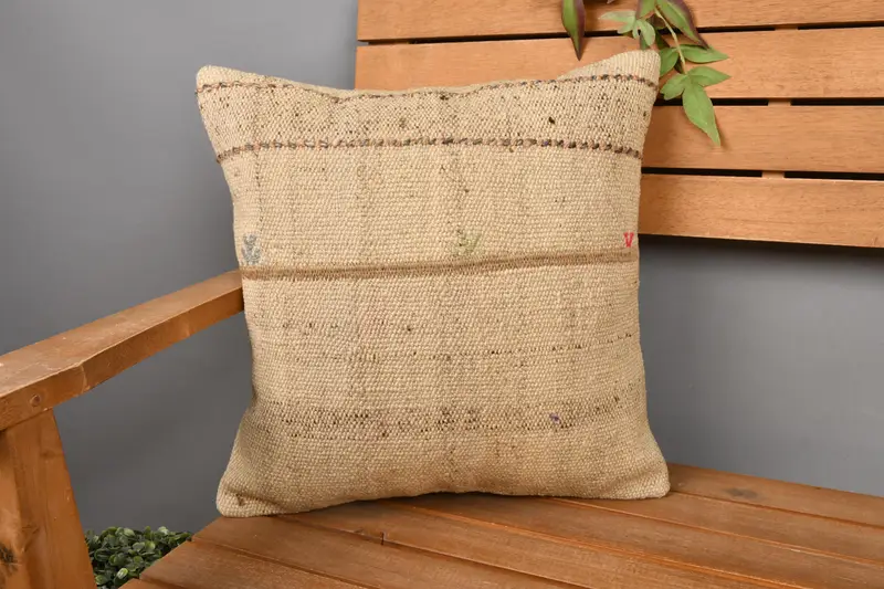 Almohada de lanzamiento de patchwork beige y marrón, cojín bordado 16x16