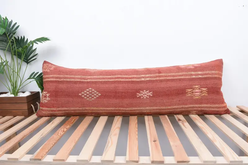 Almohada de tiro de lino bordado hecha a mano, cojín versátil de 16x48