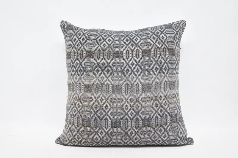 Almohada de lanzamiento bordada gris y beige 32x32, almohada Ikat vintage