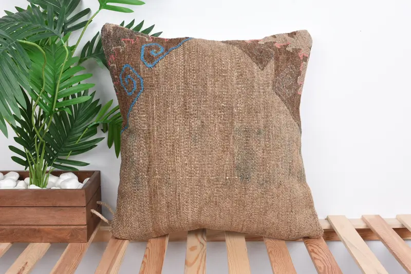 Almohada de lanzamiento bordada marrón y bronce, almohada vintage 20x20