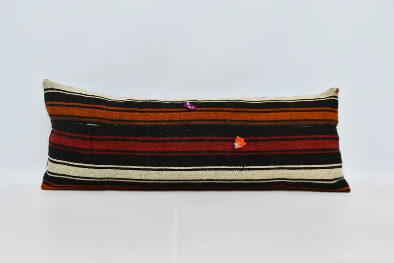 Almohada de tiro a rayas rojas y marrones, cojín de cáñamo y lana hecho a mano