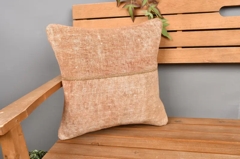 Almohada de lanzamiento de patchwork naranja y marrón, cojín bordado 16x16
