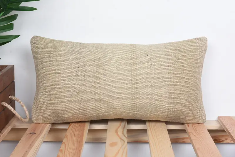 Almohada de rayas beige bordada, almohada de tiro hecha a mano 8x16