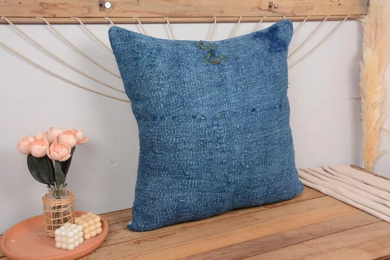 Almohada de lanzamiento azul del suroeste, cojín vintage bordado 28x28
