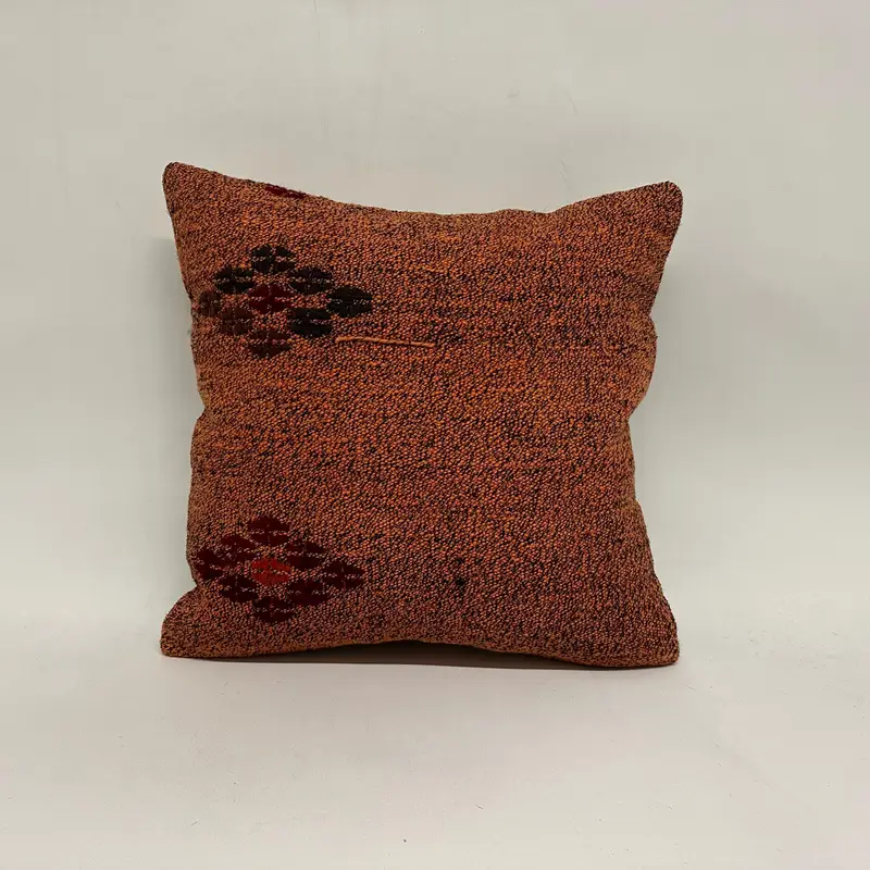 Almohada de lanzamiento geométrico naranja y marrón, cojín vintage bordado
