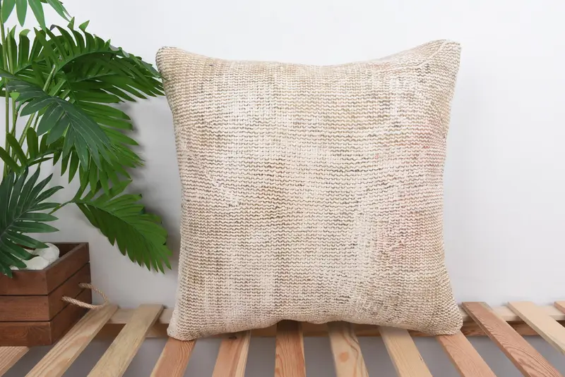 Almohada bordada del suroeste beige, almohada de tiro vintage 20x20