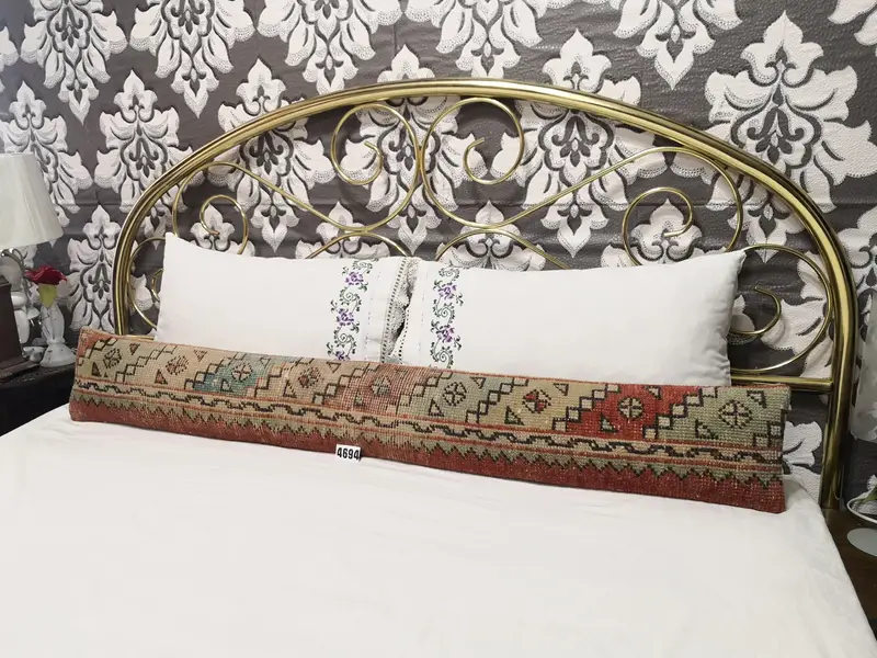 Almohada de lanzamiento de lana con estampado geométrico, almohada rectangular bordada vintage