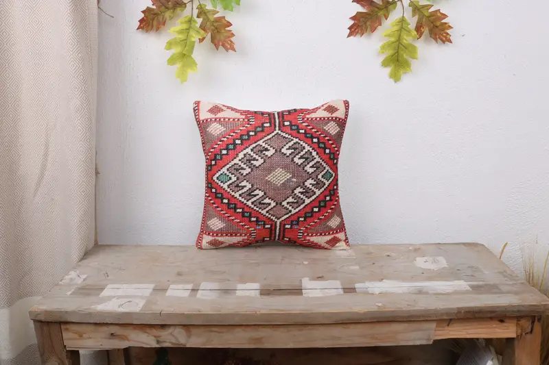 Almohada de lanzamiento roja y beige bordada, almohada cuadrada vintage