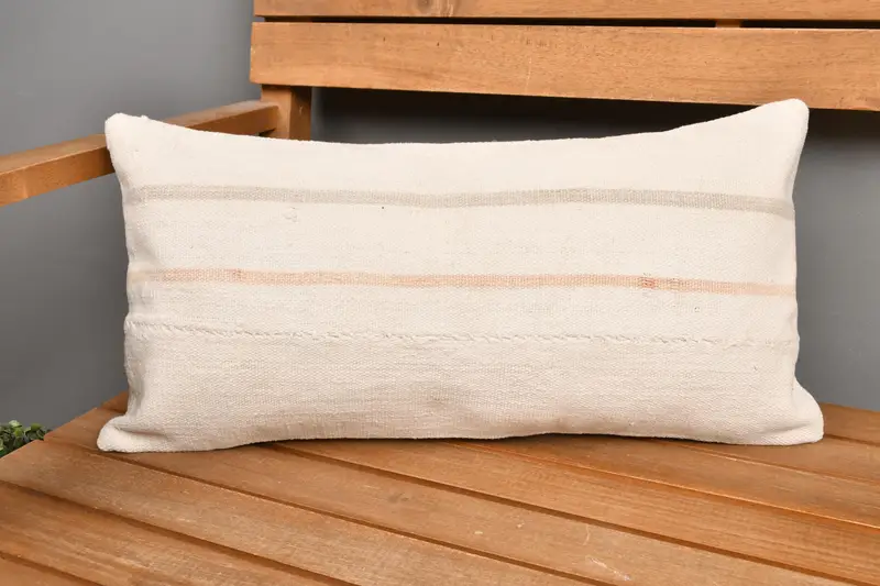 Almohada de tiro a rayas hecha a mano, cojín bordado de 10x20 con encanto vintage