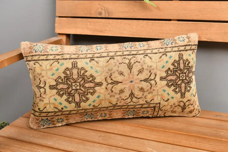 Almohada de lanzamiento rectangular floral beige y marrón, cojín vintage