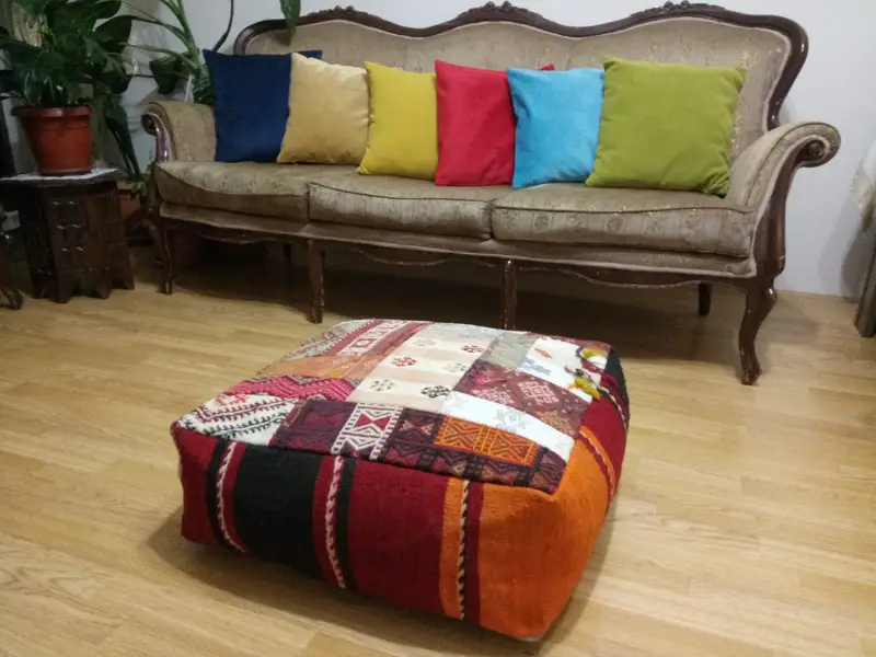Almohada de lanzamiento de lana patchwork roja y blanca, almohada cuadrada vintage