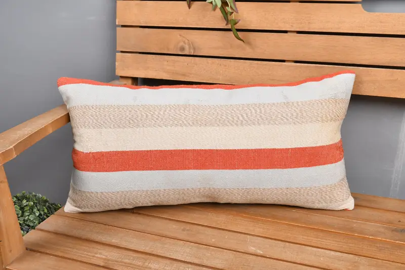 Almohada de rayas beige y roja bordada, almohada de tiro vintage hecha a mano