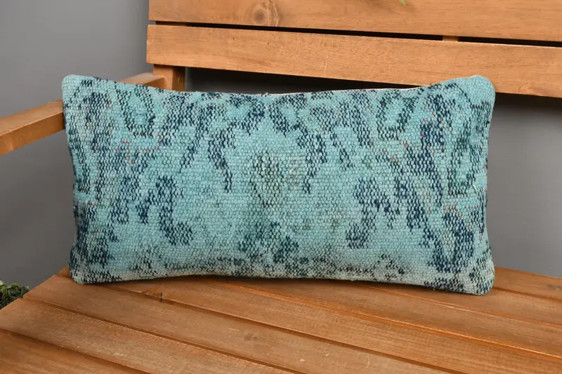 Almohada de lanzamiento bordada verde y púrpura, cojín hecho a mano de 10x20