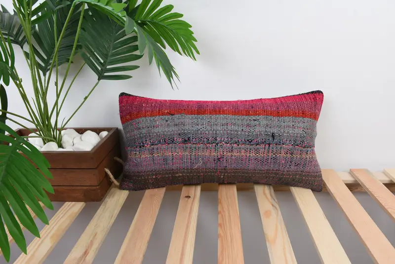 Almohada de tiro patchwork azul y rojo, almohada de lino bordada hecha a mano